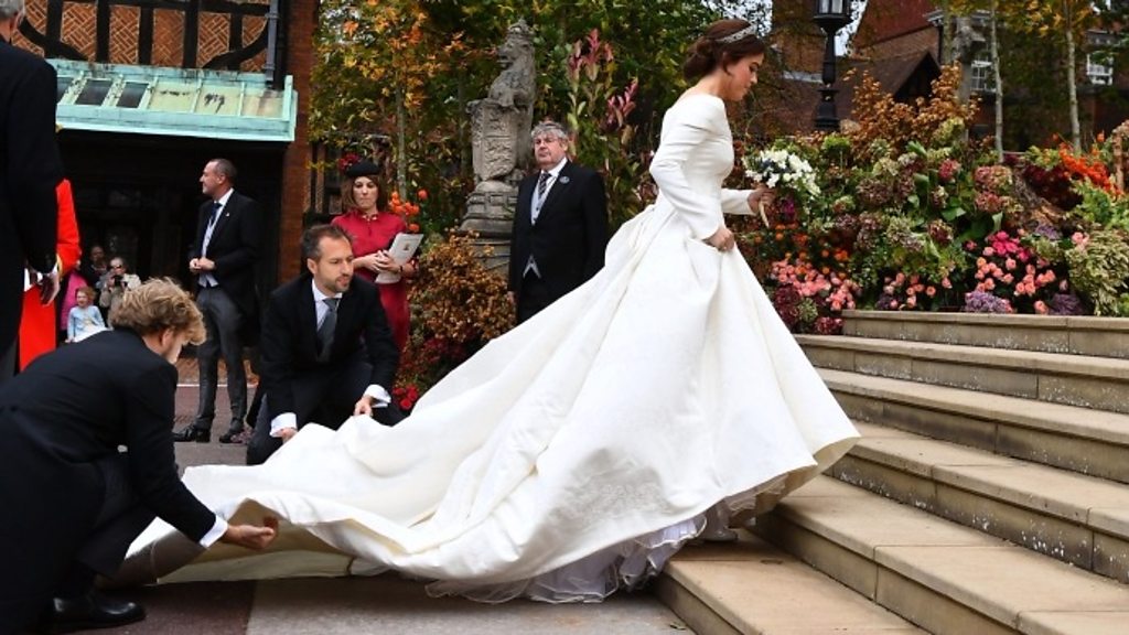 Durante un ceremonia y dilanti un audiencia estelar, Princess Eugenie a casa cu e amor di su bida Jack Brooksbank den St. George’s Chapel na Windsor Castle. E shimis di bruid di Princess Eugenie ta diseńa pa Peter Pilotto y Christopher de Vos, kendenan nunca antes a diseña un shimis di bruid.