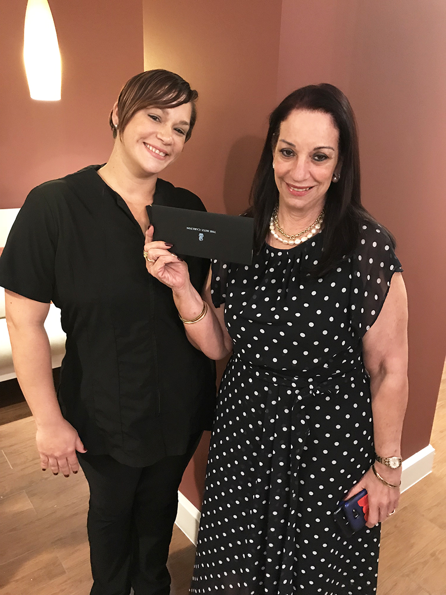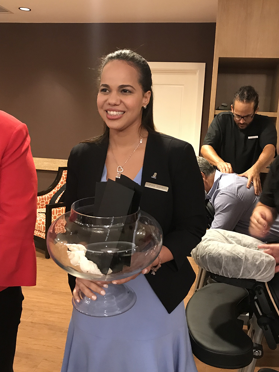 Semper e team di The Ritz-Carlton Aruba ta crea un momento unico pa di e forma aki mustra nan aprecia den un manera special. E General Manager, Sr. Steven Redkoles, a duna un bon bini cordial na e yegada den e Spa. Aki nan a comberti un parti di e salon den e venue pa e ‘Appreciation Cocktail Reception”. E welcome cocktail tabata un mix special cu a cay hopi na smak y tabatin un seleccion exkisito di hors d’oeuvres y petit fours. Esunnan presente a haya e oportunidad pa haci un ‘stress relief massage’ y nan a keda encanta y relaha. Como muestra di aprecio tur e invitadonan a haya un gift certifícate pa ’50-Minute Local Relaxations Massage’ na The Ritz-Carlton Spa.