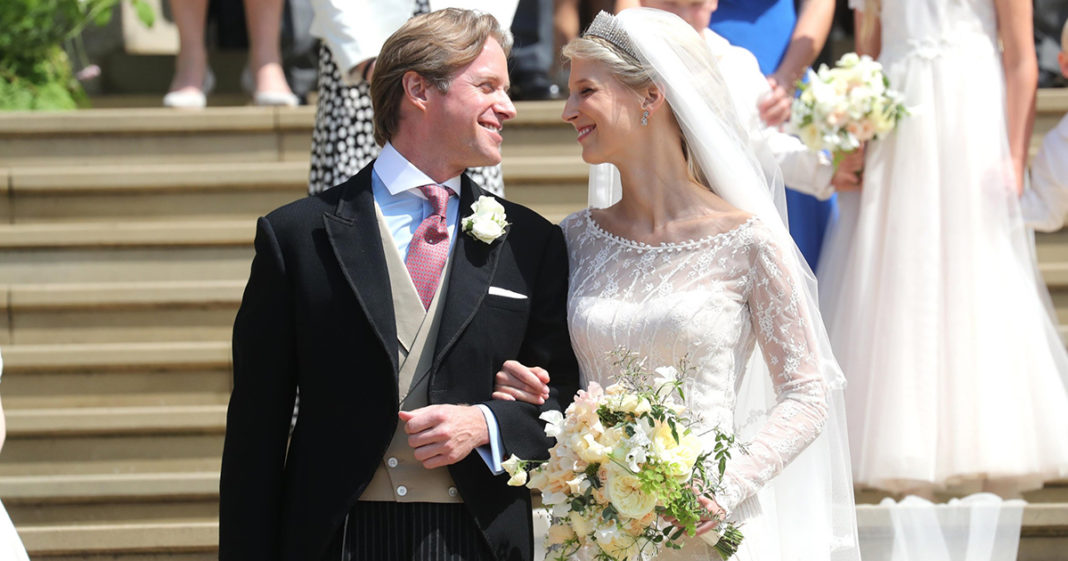 Lady Gabriella Windsor a casa cu Thomas Kingston awe 18 di mei na St George’s Chapel na Windsor Castle. E novia a luci esplendido den su shimis impresionante di Luisa Beccaria. E shimis cu ta un soño tin un escote maraviyoso y manganan largo di canchi borda cu ta continua te na su man, casi manera un handschoen. Diseña exclusivamente pa e realesa, cu un velo di seis meter, haci den varios capa di tul ros y blanco den e mesun tono di e shimis, uni pa flornan chikito borda na man.