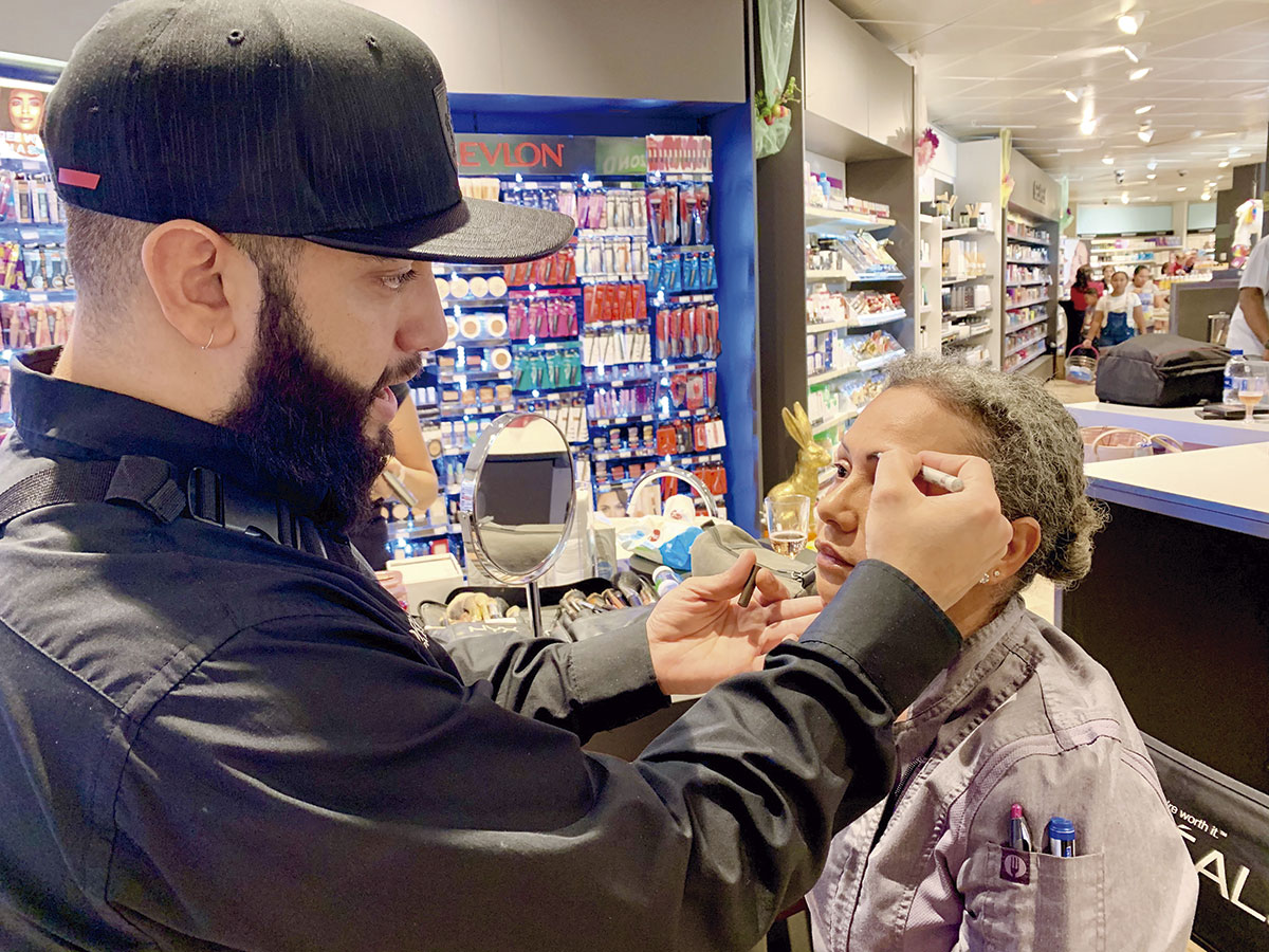 E siguiente experto formando parti di e ‘glam squad’ ta e make-up artist, Jason Gausch, cu a laga tur e damanan un biaha mas sinti feliz cu su toke magico. Cu pasenshi nan a para den rij pa warda nan turno pa asina Jason splica cada un cua ta e make-up perfecto pa resalta nan beyesa.