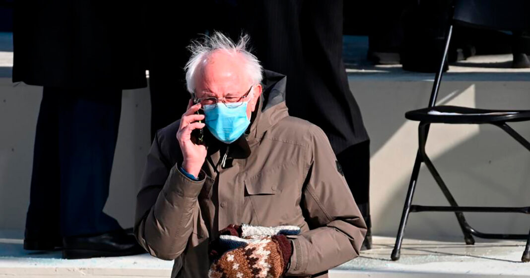 E awo potret iconico di Bernie Sanders, sinta cu su pianan cruz saca pa e fotografo di AFP Brendan Smialowski, a bira inmediatamente bira viral ora e hendenan a photoshop e potret, y pone riba e rednan social, poster di pelicula y incluso sientanan di subway. E handshoen di wol cu e senador Sanders a uza na e inauguracion presidencial a converti rapidamente den un meme viral, y a inspra varios guia di compra y tutorials con pa haak bo mesun ‘mittens’, cu ta un handschoen cu tin dos buraco, uno pa e cuater dedenan y uno pa e duim. E handschoen a yuda recauda $ 1.8 miyon durante cinco dia pa e organisacionnan benefico na e estado natal di Sanders, Vermont. E ta recauda for di e benta di e mercancia, incluyendo flanel y sweatshirts, cu un potret di e senator publica riba su website siman pasa.