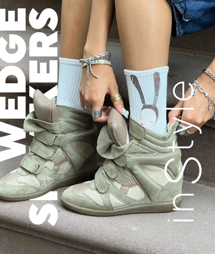 E keds aki tabata t’ey caba durante e lunanan di zomer, pero pa motibo di e calor nan no a wordo realmente bisti. Actualmente nan ta saliendo tur afo. Danki na nan diseño versatil, wedge sneakers ta pas cu hopi outfit. Combina nan cu jeans y un blusa oversized of simplemente bisti nan cu shimis of saya pa un look mas femenino.